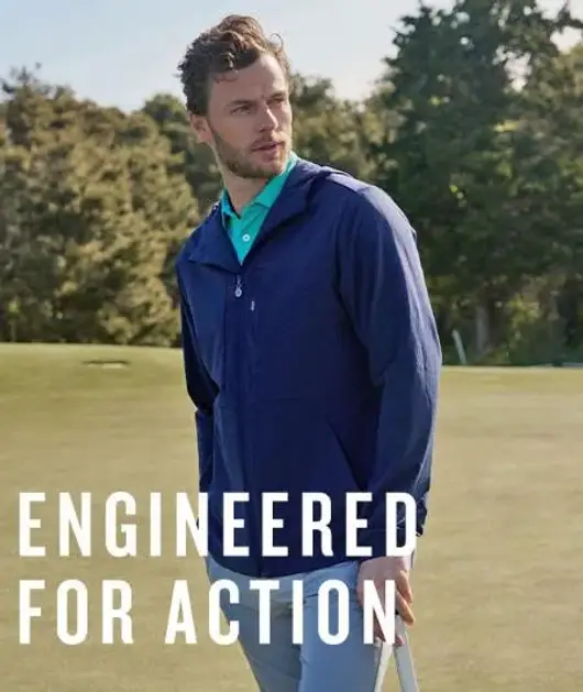 The Brookview Jacket moves with you, keeping out the elements with water-resistant stretch. Thoughtful details like a lock-down hood and sealed pockets enhance its performance on the course. Shop in store today!